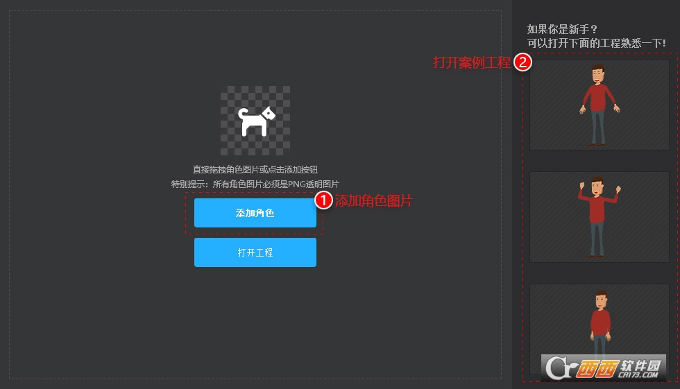 (1)直接拖拽角色图片或点击添加按钮,且所有角色图片必须是PNG?透明图片或PSD格式图片。