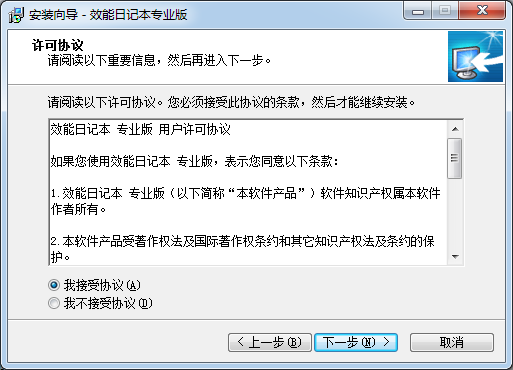1、到本站下载安装效能日记本,打开安装程序,点击下一步继续安装