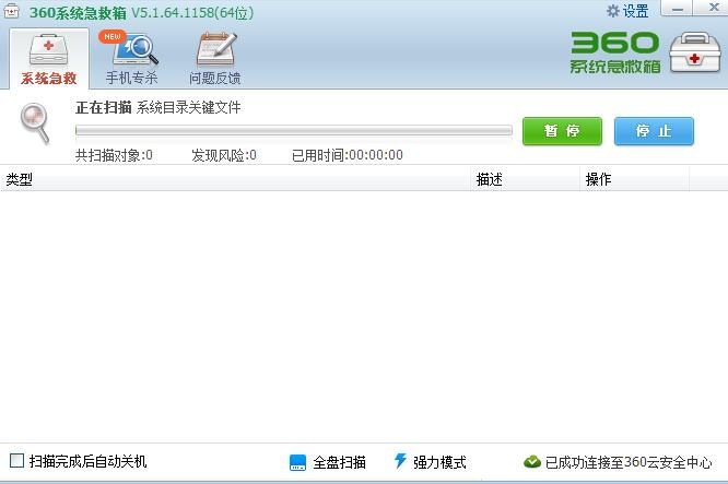 系统紧急救援,各类传统杀毒软件查杀无效的情形;电脑感染木马,导致360无法安装或启动的情形。