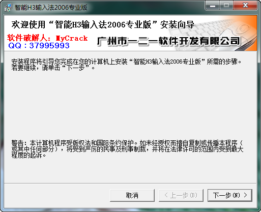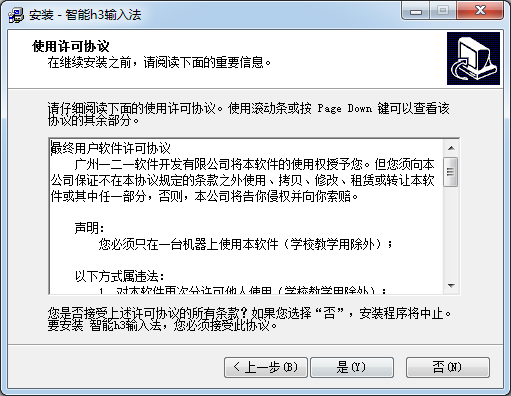 1、到本站下载安装智能H3输入法,打开安装程序,点击下一步继续安装