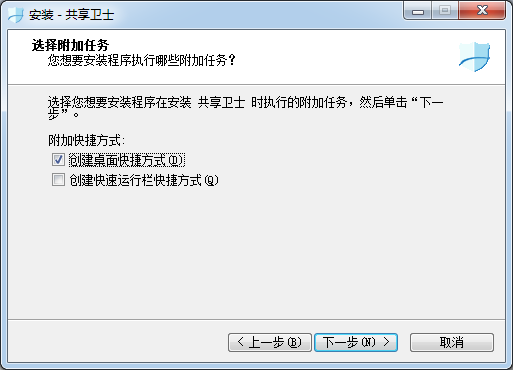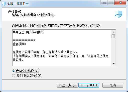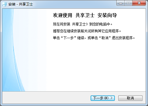 1、到本站下载安装共享卫士,打开安装程序,点击下一步继续安装