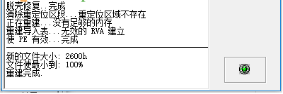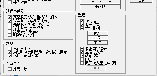 删除临时文件、重建PE、状态窗口、脱壳修复、重新排列