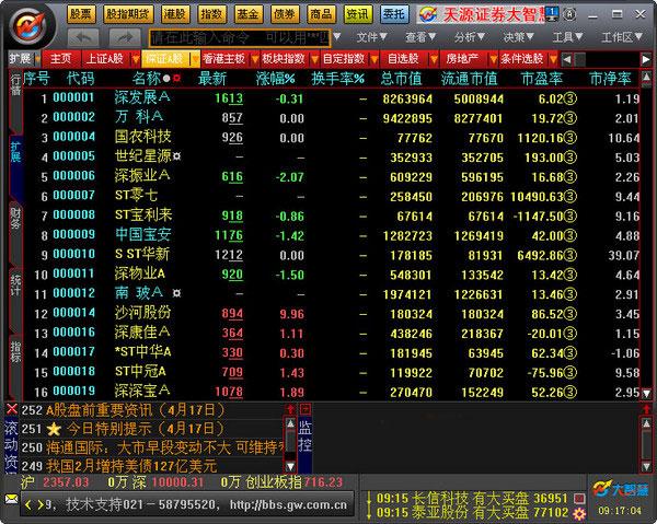 天源证券大智慧是一款功能齐全的证?恍星槿砑?,与此同时还融合了恒生买卖客户端,此软件为使用者供应炒股票必不可少的沪深两市(含创业板股票),股票基金,港股美国股票等外盘期货及股指行情,行业财经和股票F10新闻资讯,线上授权委托买卖等所有作用,还能下载查询港股延迟行情。没体验过的用户可下载体验一把。