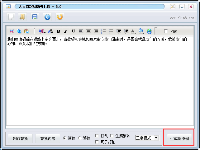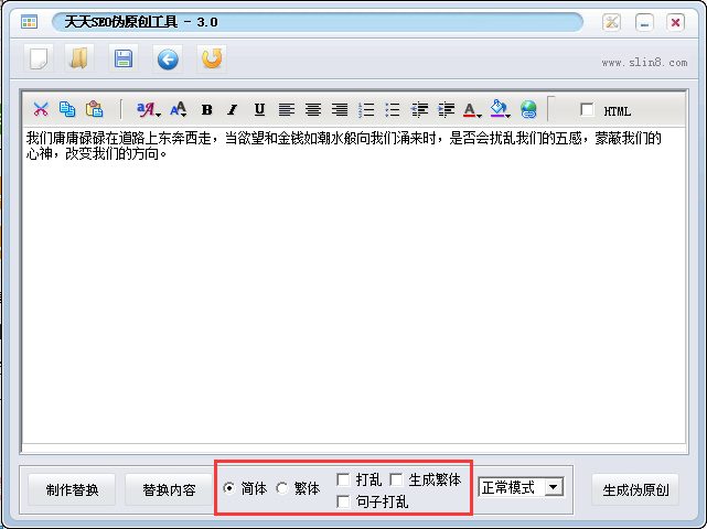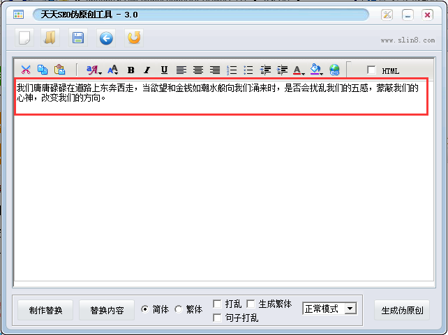 可以制作纯网页格式的伪原创文章,支持HTML超文本标识语言。