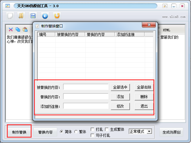 点击制作替换内容,输入被替换的内容以及替换的内容,设置需要添加的链接。
