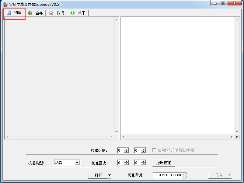 打开需要调整的字幕文件,文件将显示在左边的原始文件内容区和右边的构建缓冲区。