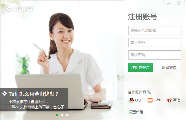 到本站下载安装金山快盘,打开安装程序,选择快速安装或是自定义安装