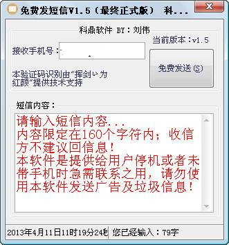 免费在线发短信是一款可以根据电脑上,免费向手机上发短信的软件,该软件仅为第三方平台嫁接应用,软件无病毒,完全免费!因避免故意使用本软件,软件不提供全自动认证作用,短信验证码设定繁杂,请细心键入进行!因启用意见反馈代码并未开发设计彻底,软件要是提示信息发送不成功,也不影响使用该软件。喜欢的用户可直接下载!