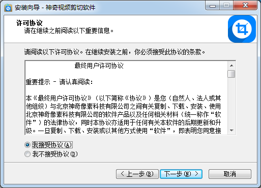 到本站下载安装神奇视频剪刀软件,打开安装程序,点击下一步继续安装。