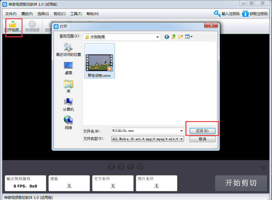 第一步:打开视频,点击左上角“打开视频”按钮,选择你要剪切的视频文件。