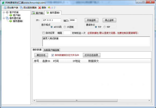 建立Socket测试服务器端和测试客户端,并向其他端发送或接受报文数据。支持自动发送和自动应答,支持UDP和TCP。
