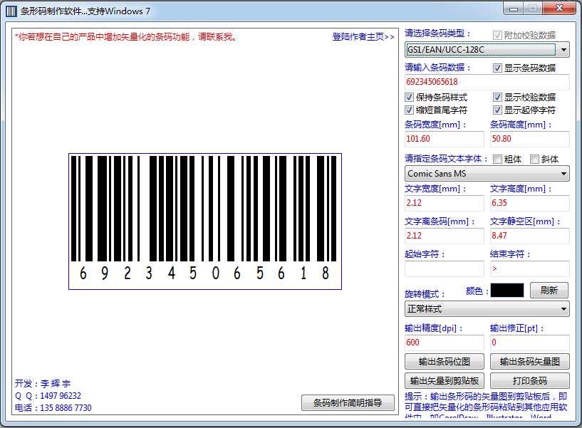 7、支持生成四种商品条码类型:EAN-13、EAN-8、UPC-A、UPC-E。