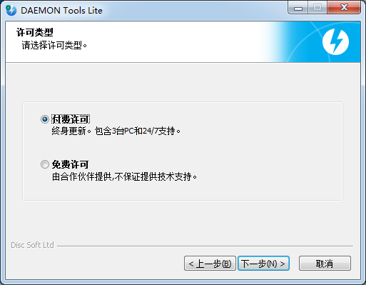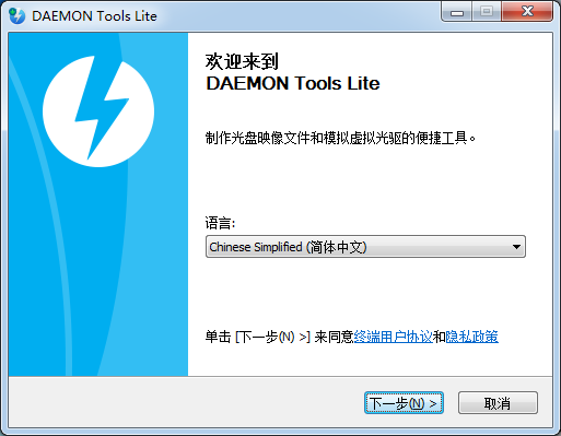 1、到本站下载安装DAEMON Tools,打开安装程序,点击下一步继续安装