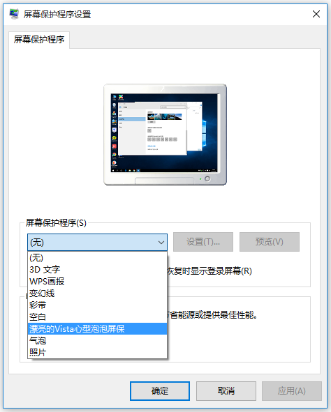 本屏保可设置的功能选项有:透明气泡/实心球体、显示桌面/黑色背景、大号/小号泡泡、彩色/黑色泡泡、阴影开关等,需通过开始菜单内屏保设置软件才能进行设置。