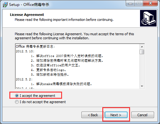 1、到本站下载安装Office病毒专杀,打开安装程序,点击下一步继续安装。