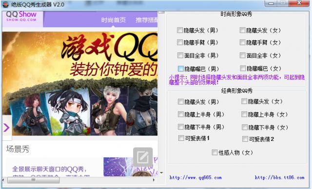 光行资源网提供的绝版qq秀生成器是款能够协助用户转化成QQ秀的工具软件,该工具能够在几秒钟的?r间内就可以让用户设计方案出专属于自己的绝版QQ秀,此后玩转QQ秀,喜欢QQ秀的小伙伴必拥有的一款电脑软件,欢迎下载。