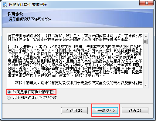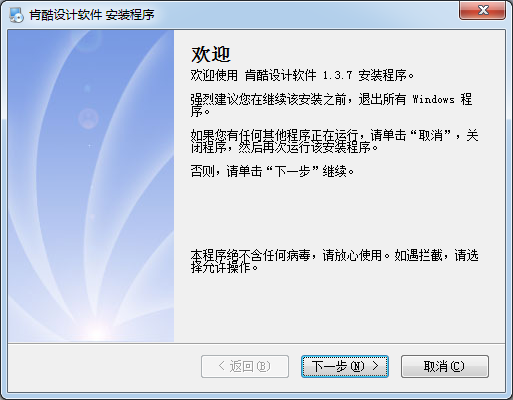1、到本站下载安装肯酷个性印品,打开安装程序,点击下一步继续安装。
