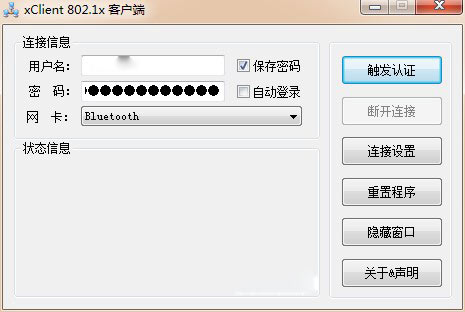 1、打开软件,选择合适的网卡,输入用户名和密码信息,点击触发认证