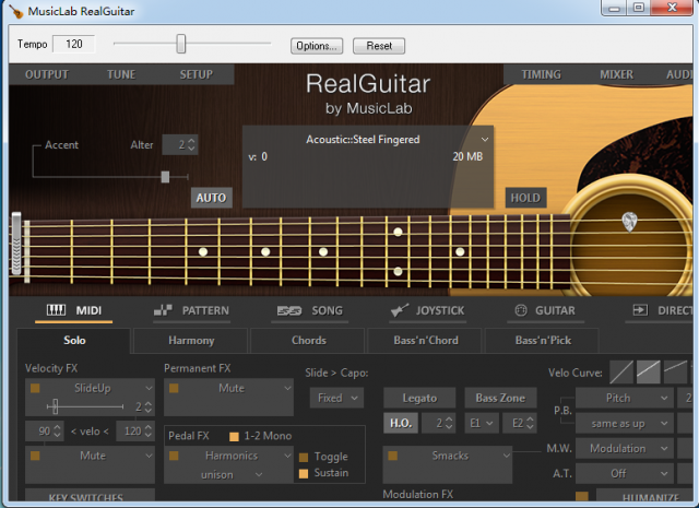 我们原创的吉他触摸技术让您轻松使用标准MIDI键盘和MIDI控制器(如弯音器,调制轮,延音踏板,触后)来模仿基本的吉他技巧(弹拨,拨动,滑动,弯曲,静音等)。