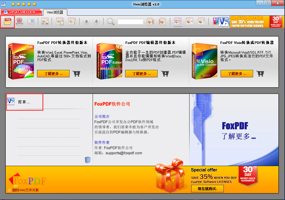 打开,阅读和打印Visio文档来自于FoxPDF Visio浏览器。