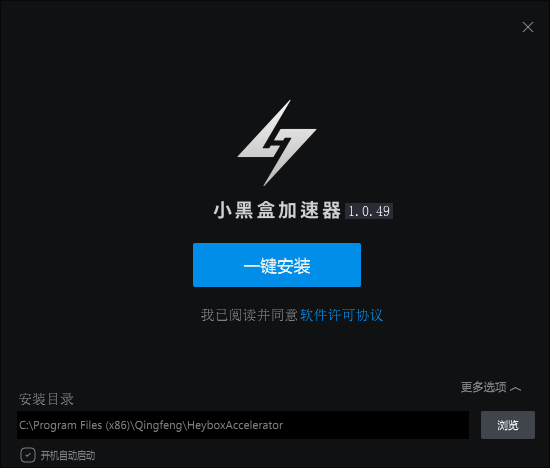 步骤 1. 在本站下载安装小黑盒加速器,打开安装程序,点击更多选项