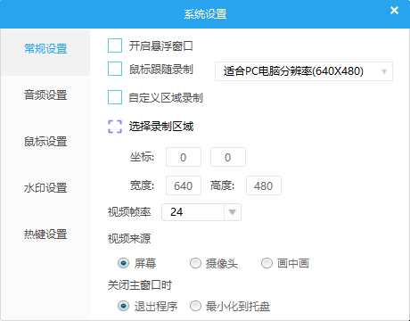 2、支持全屏和自定义区域录制,以及应用程序窗口录制。
