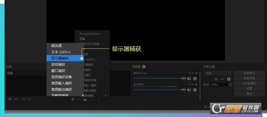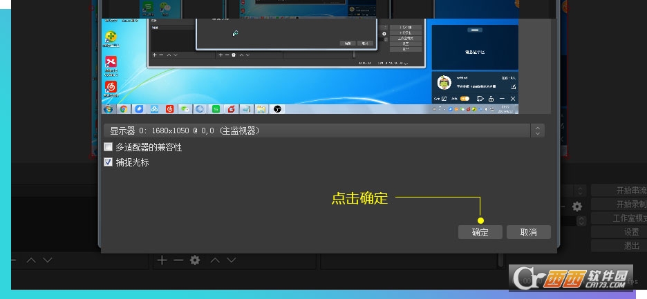 第四步:OBS设置,添加 “显示器捕获” ,点击 “开始串流” 即可开始直播。