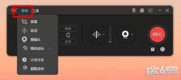 注意:如果你只想录制声音,可以点击“录制”>“音频”,倒计时结束后就会录制没有画面的音频。另外,你也可以通过点击“围绕鼠标”,选定画面比例,录制跟随鼠标方向移动的屏幕画面。
