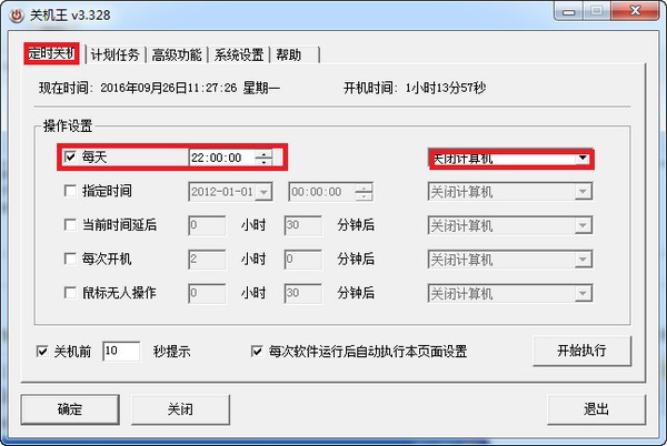 2、定时执行关机、重启、切断网络、信息提醒、打开文件,执行指定任务,帮助你节约用电,是低碳办公和低碳生活的新潮流。