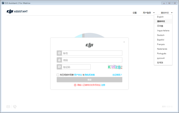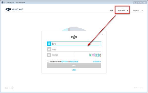 三、切换完成后,用户点击登录可以登录自己的大疆账号进行远程控制升级。