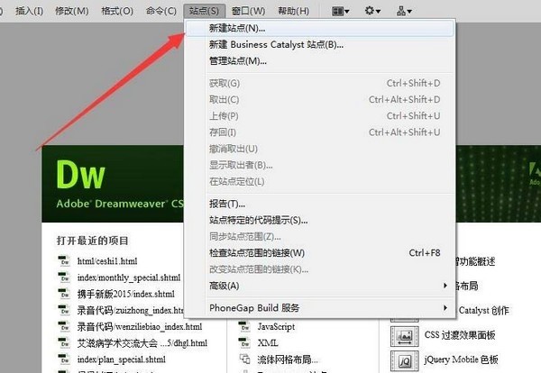 5、这样新项目就导入到Dreamweaver里面了。