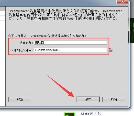 4、这时候站点名称和路径就已经都有了,点击“保存”按钮。