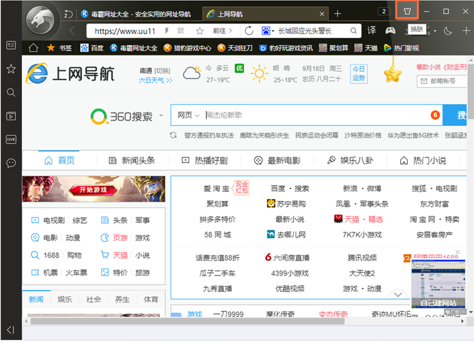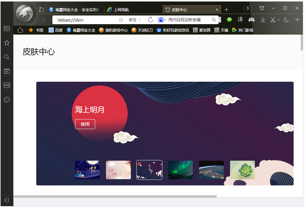 打开猎豹安全浏览器,进入界面,点击右上方的【换肤】按钮,