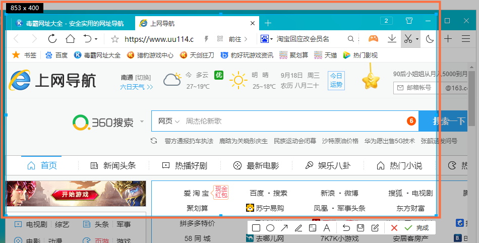 点击【√】,完成截图,可以在微信、QQ聊天窗口发送图片;或者直接点击【保存】按钮,保存图片;