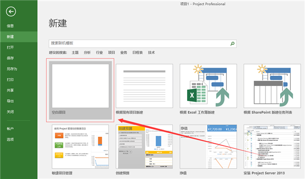 Project 2016何新建空白项目首先打开Project 2016,然后选择新建--空白文档(如图一)