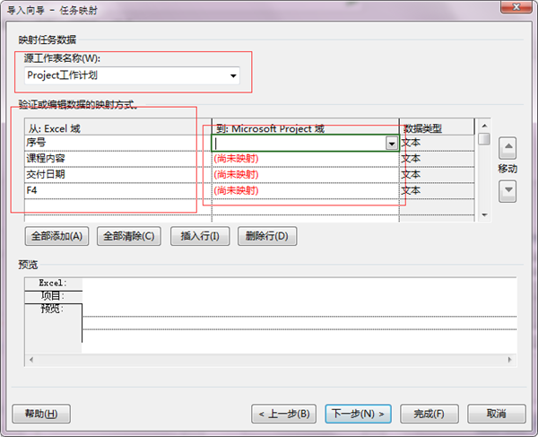 Project 2016导入Excel文件