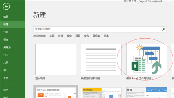 第一步:点击Project 2016,然后点击新建---根据Excel工作蒲新建