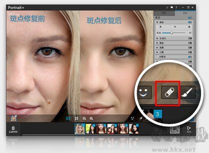 2、简单易用的手动去斑工具可按您的意愿去除那些您不想在照片中看到的斑点与皮肤瑕疵