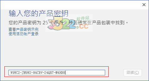 4.再这里输入软件密钥“W9WC2-JN9W2-H4CBV-24QR7-M4HB8”,再点击“安装”。