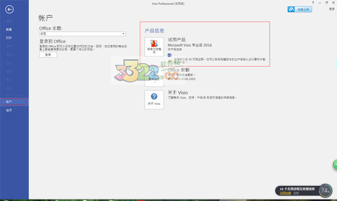 5.不过输入了产品密钥之后,在“账户”菜单中可以看到软件还是只能免费使用30天。