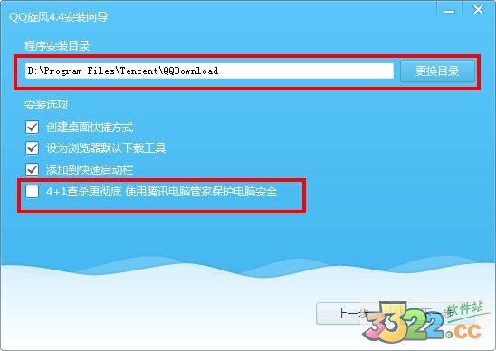 qq旋风作为一款下载工具,所以需要的空间肯定很大建议软件的安装路径选择C盘之外的辅助盘进行安装,同时如下图,选择项的第四个选项不建议勾选,因为那是捆绑软件。