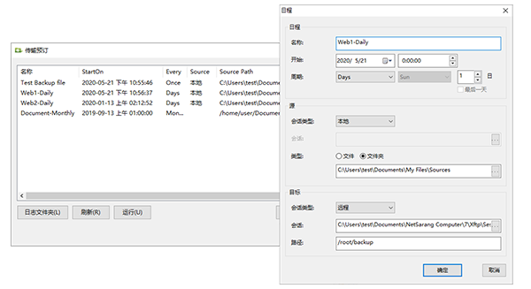 根据用户定义的时间表发送和接收文件。
