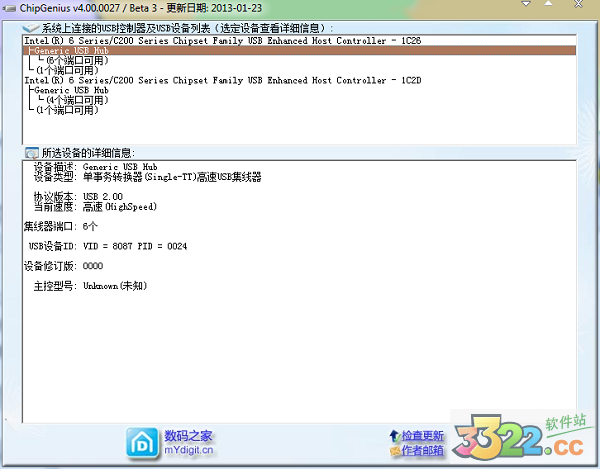 C:挑选必须检测的USB设备(如U盘/MP3/MP4/监控摄像头/电脑鼠标/HUB...),对新手小白这儿有点儿繁杂,但没关系,芯片精灵会精确定位到全新插进的U盘设备,你是否松了一口气^_^