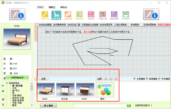 用户可以在这里将现实中的相应家居给复制到设计图当中,以此来增加相应设计图的效果感