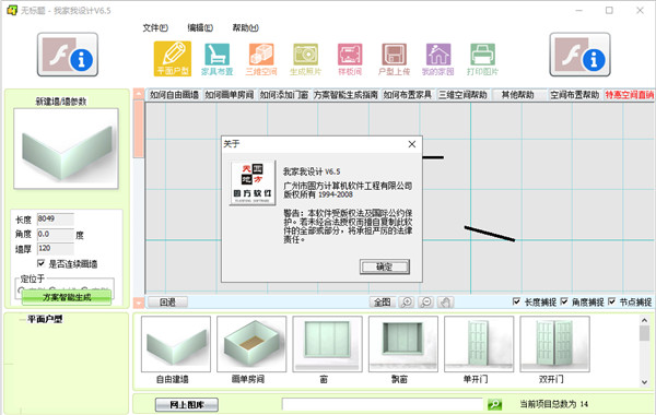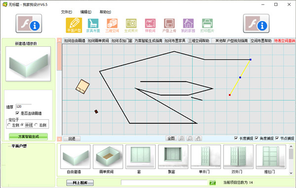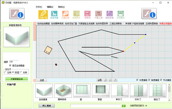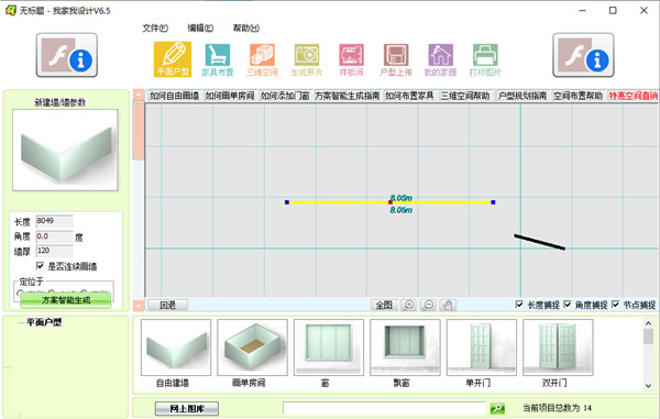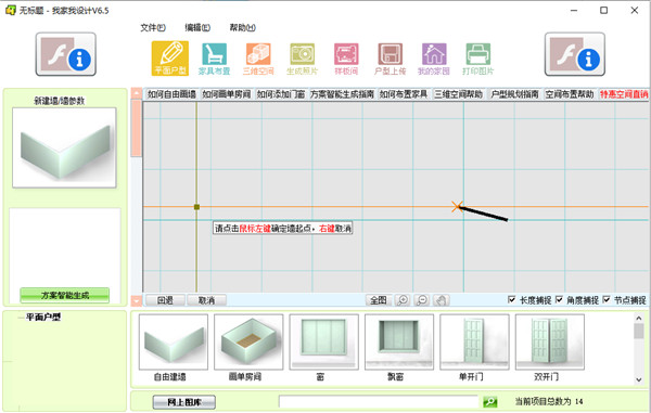 1、操作指导在这里用户如果不会某项功能,用户可以直接点击相应的操作教程进行学习操作,例如用户不知道怎么画墙,即可点击界面上的“如何自由画墙”进行画墙上的操作