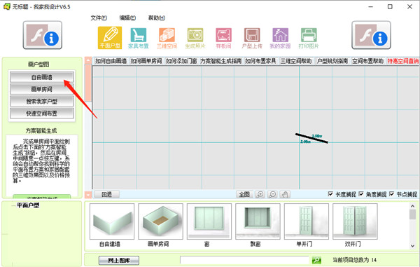 一、【如何自由画墙】1、进入软件后,点击左边自由画墙功能。