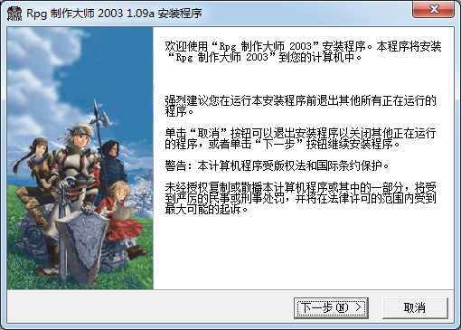 欢迎使用"“Rpe制作大师2003" 安装程序。本程序将安装Rpg制作大师2003”到您的计算机中。